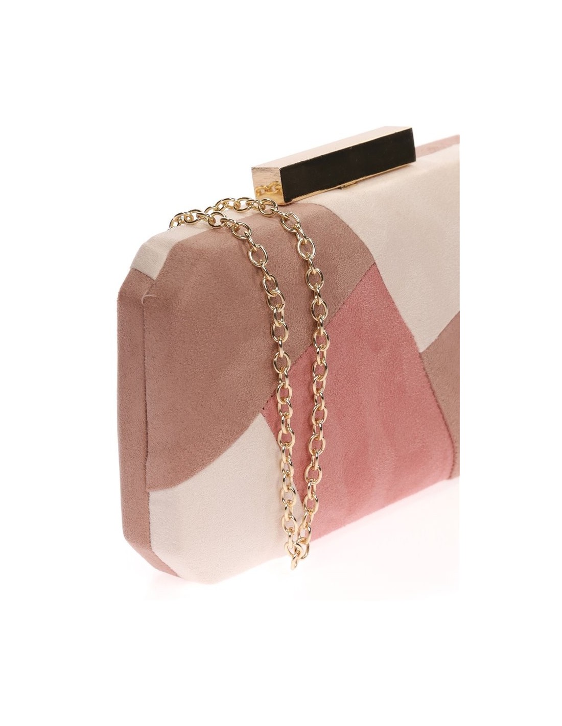 Clutch de fiesta de antelina en tonos rosados con broche dorado