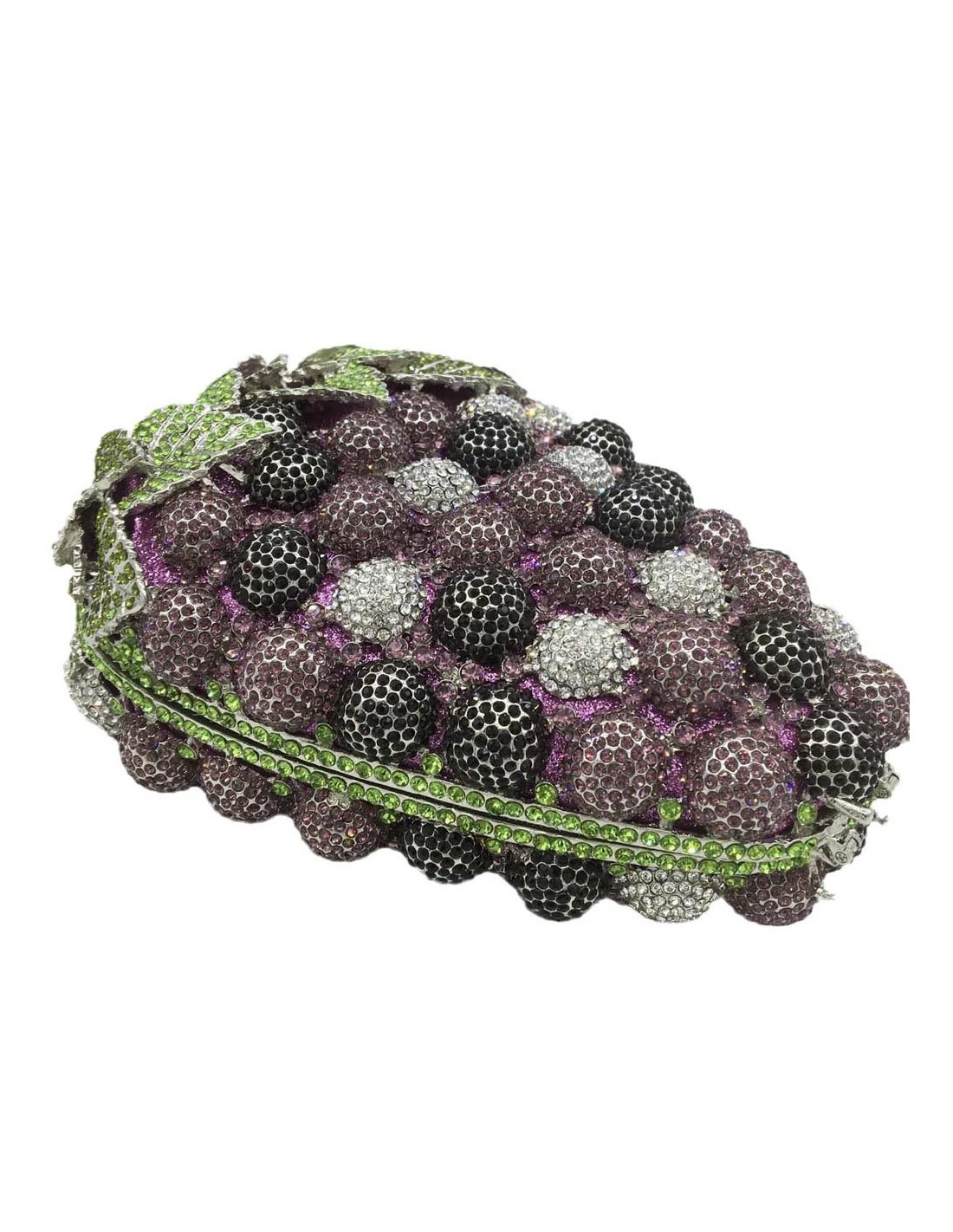 Bolso de mano joya de metal con forma de racimo de uvas. Disponible en varios colores.