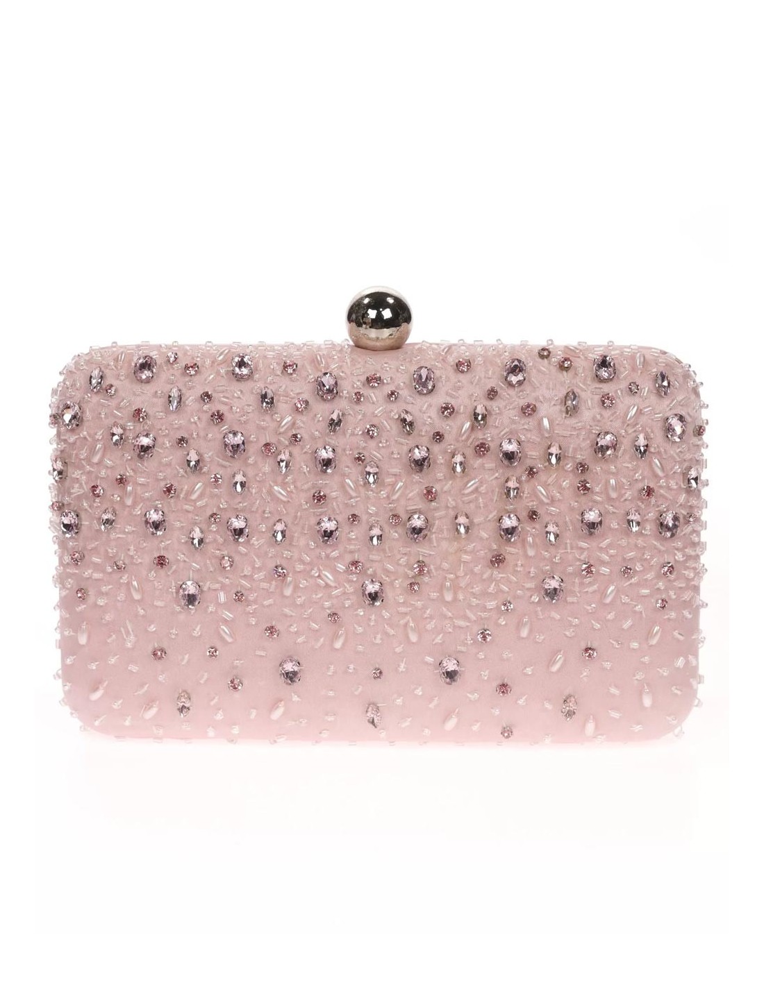 Sobre el bolso de fiesta con pedrería cosida en raso: