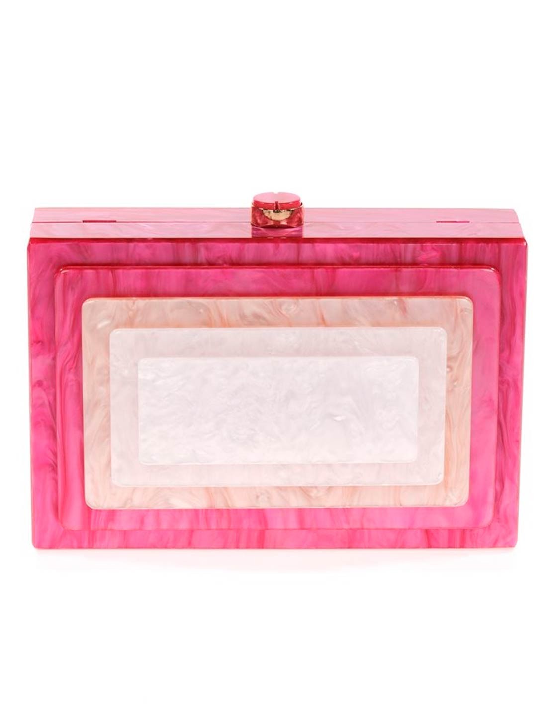 Este bolso de fiesta nacarado es realmente original. Tiene un precioso detalle frontal en diferentes tonos que hacen que combine con todo. Disponible en tres tonos principales: beige, fucsia y negro es perfecto para que clo combines para eventos de mañana, de tarde y de noche.