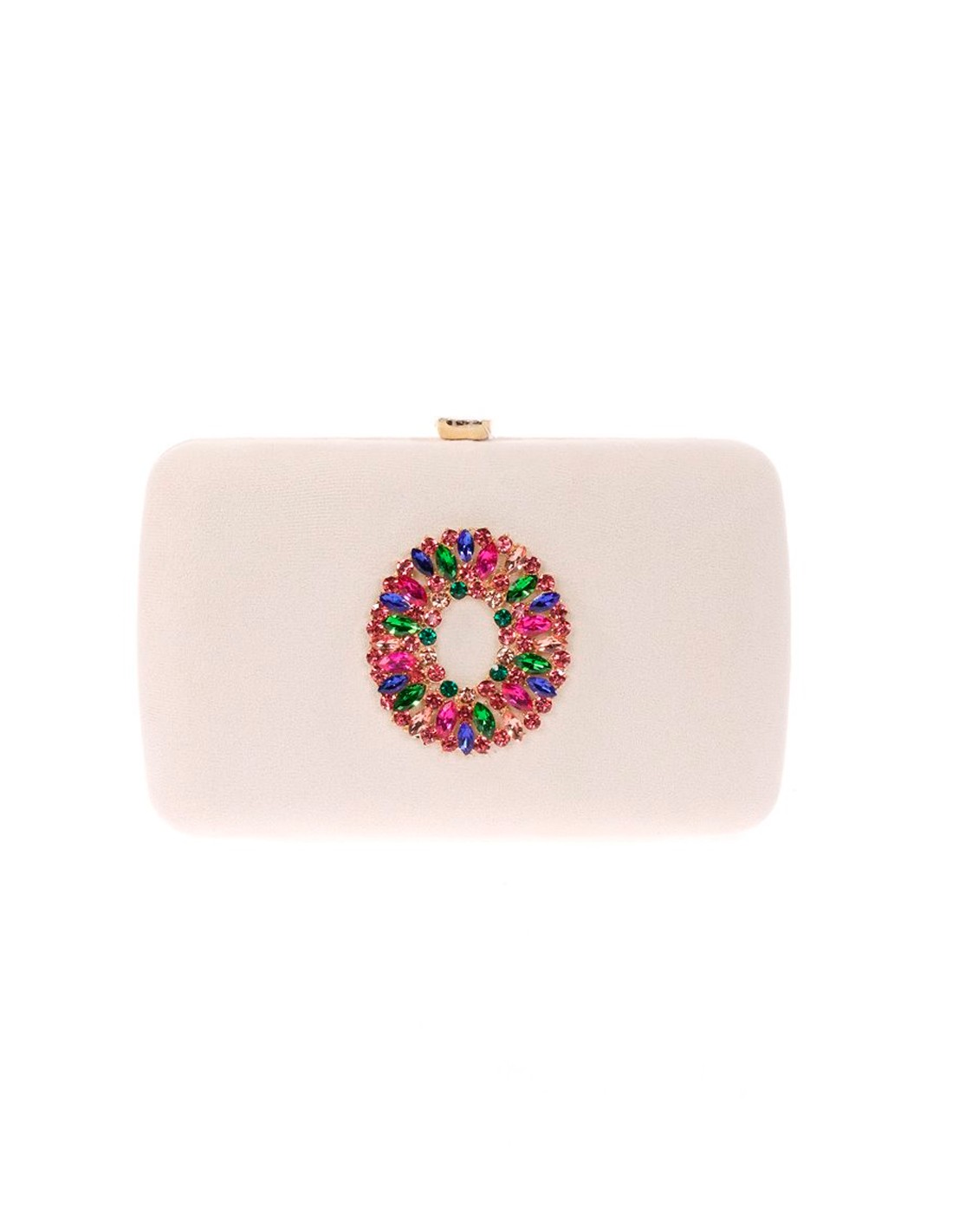 Bolso de fiesta de antelina con broche joya multicolor