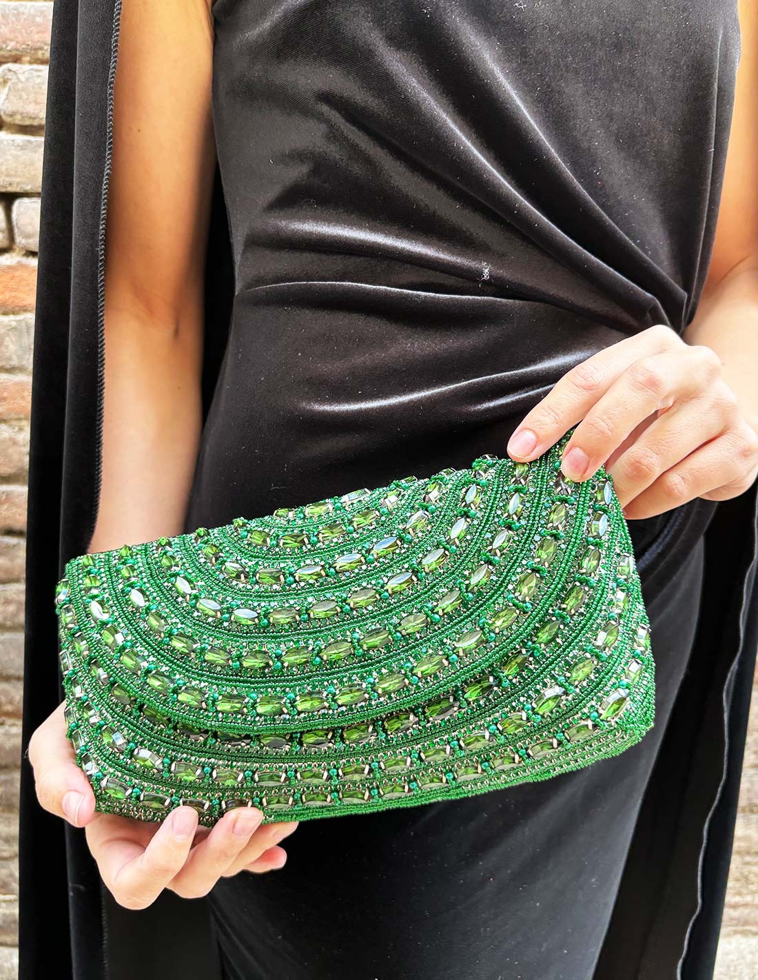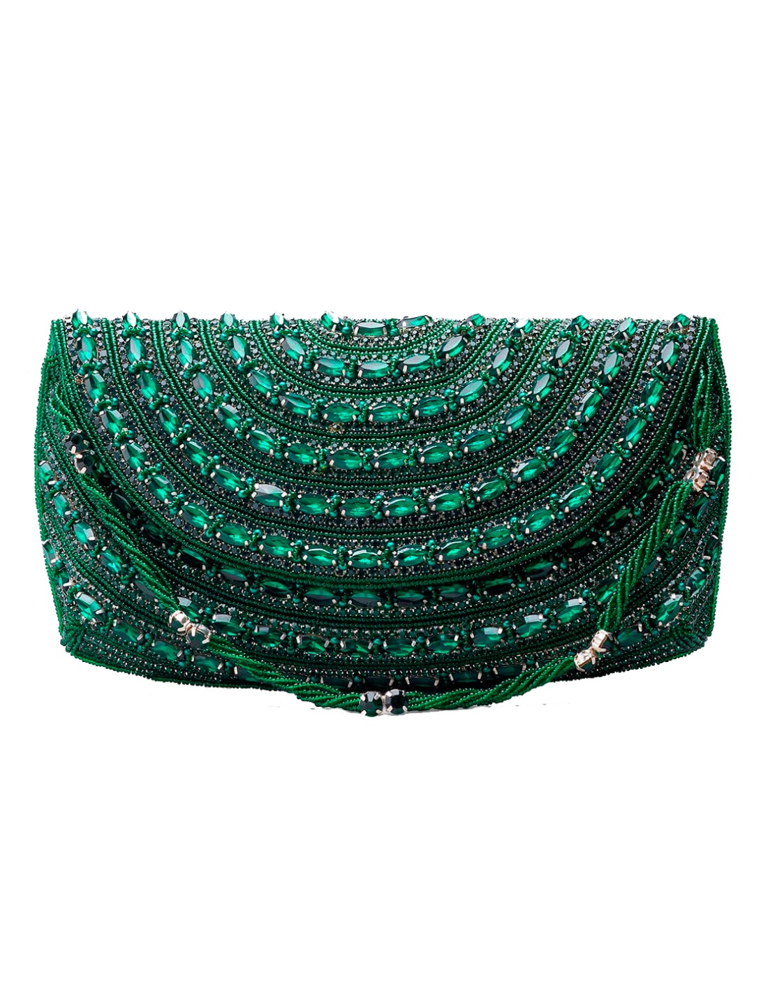 Bolso de fiesta verde esmeralda realizado en pedrería