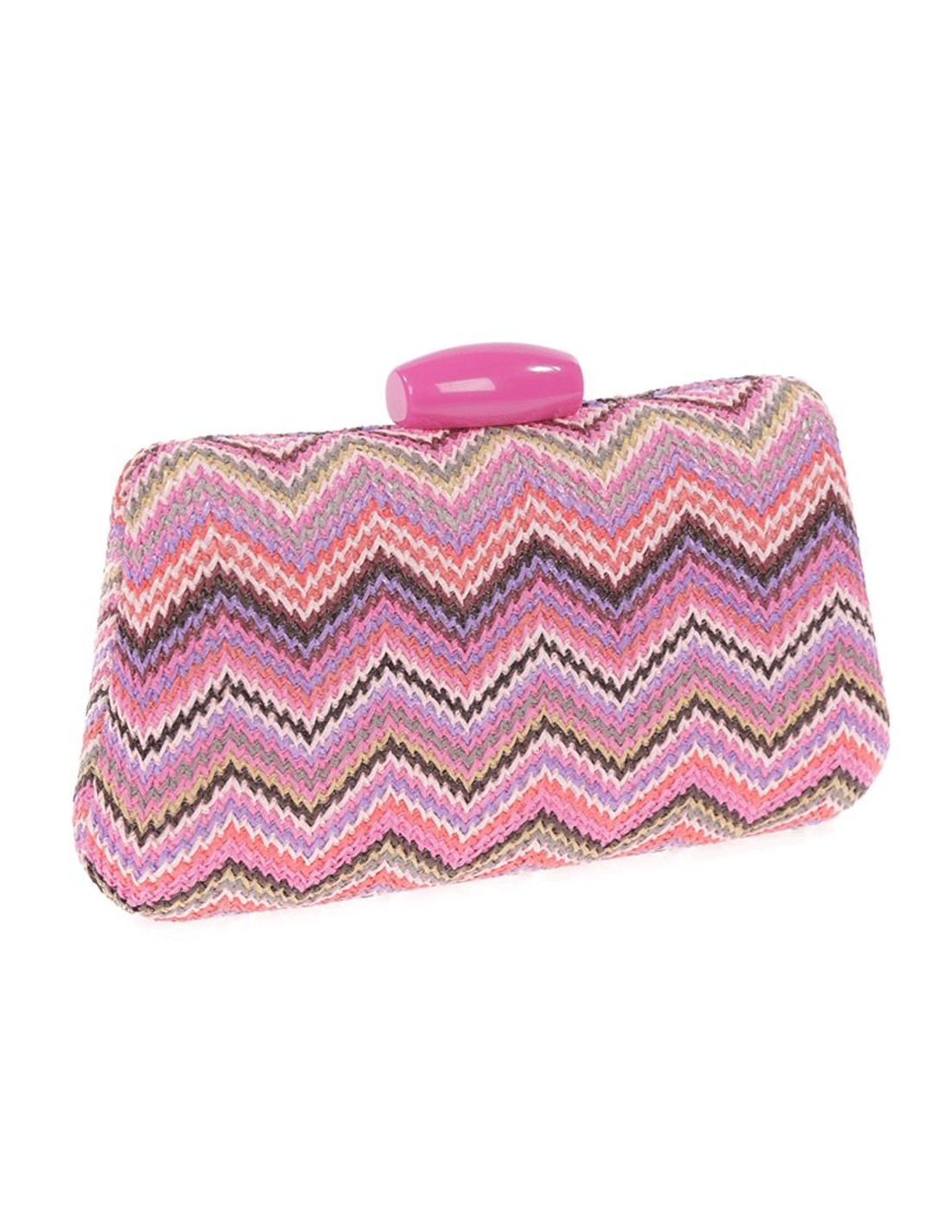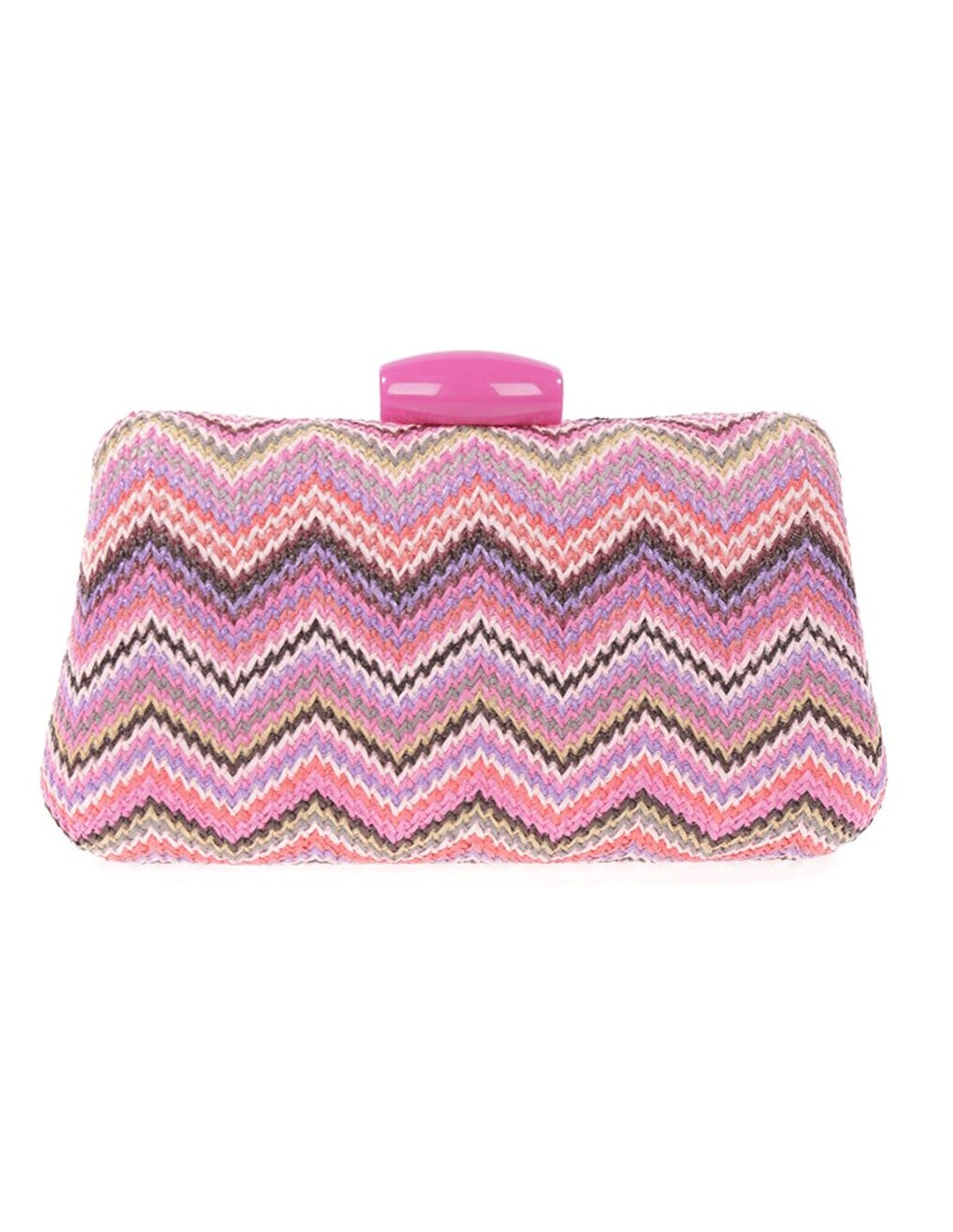 Este bolso de fiesta de rafia con diseño zigzag multicolor es el accesorio perfecto para añadir un toque de estilo y personalidad a tu estilismo de invitada.