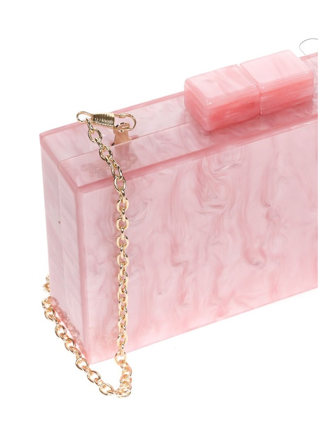 Bolso de fiesta nacarado en color rosa de Lauren Lynn London.