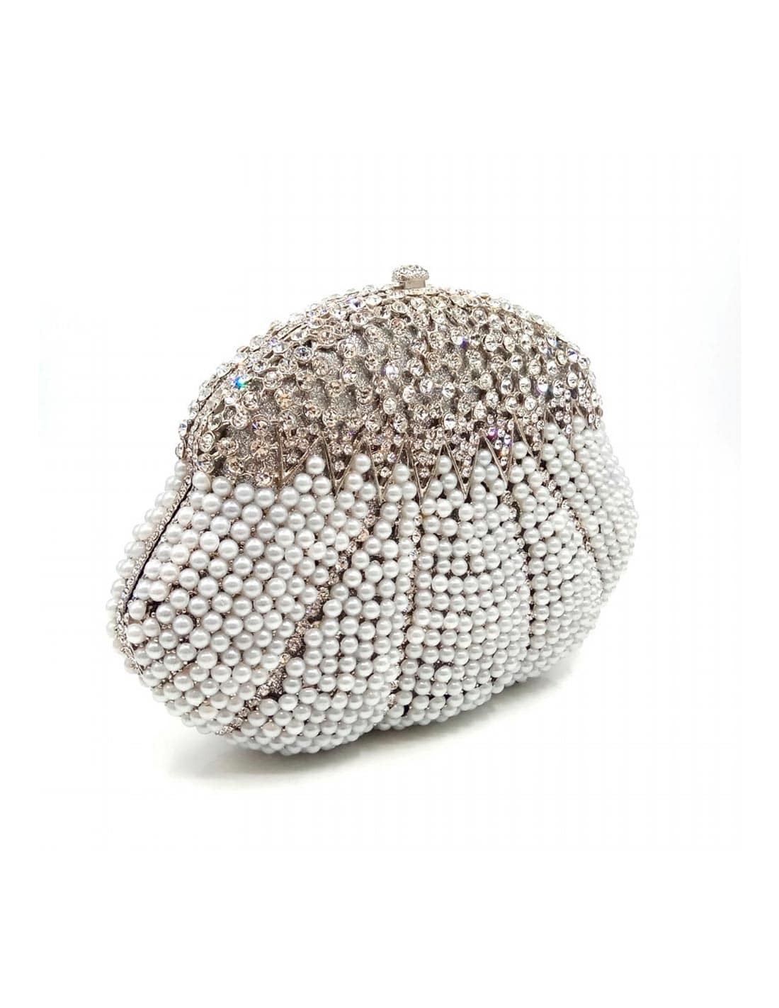 Clutch de fiesta con forma de concha y cristales de Swarovski en plata