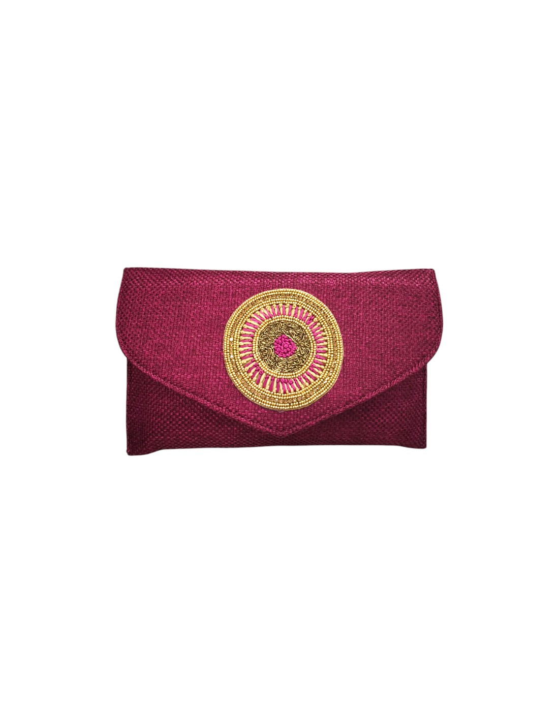 Si buscas un complemento atemporal y elegante, esta cartera de yute se convertirá en tu favorita. Su color vino, te permitirá combinarla con todo y elevará tu look tanto para una ocasión especial más formal, como para el día a día. Un accesorio versátil que no querrás quitarte y que aportará ese toque de color a tus looks. Realizada con un broche en la parte de la solapa.