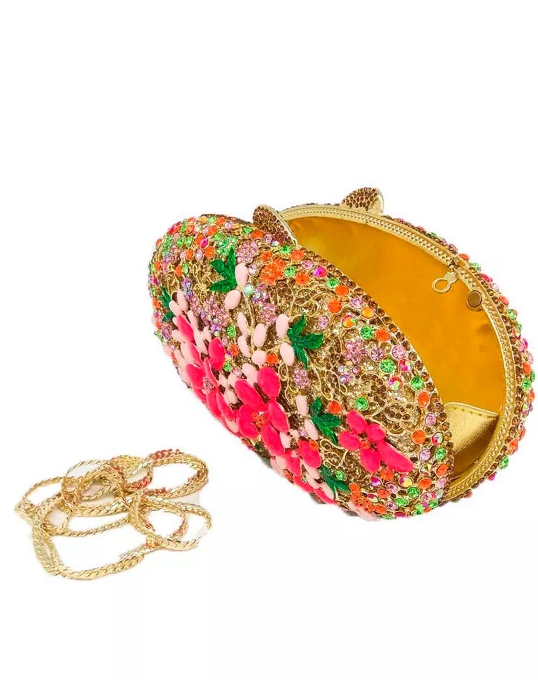 Bolso de fiesta realizado en metal con incrustaciones de cristal y esmalte