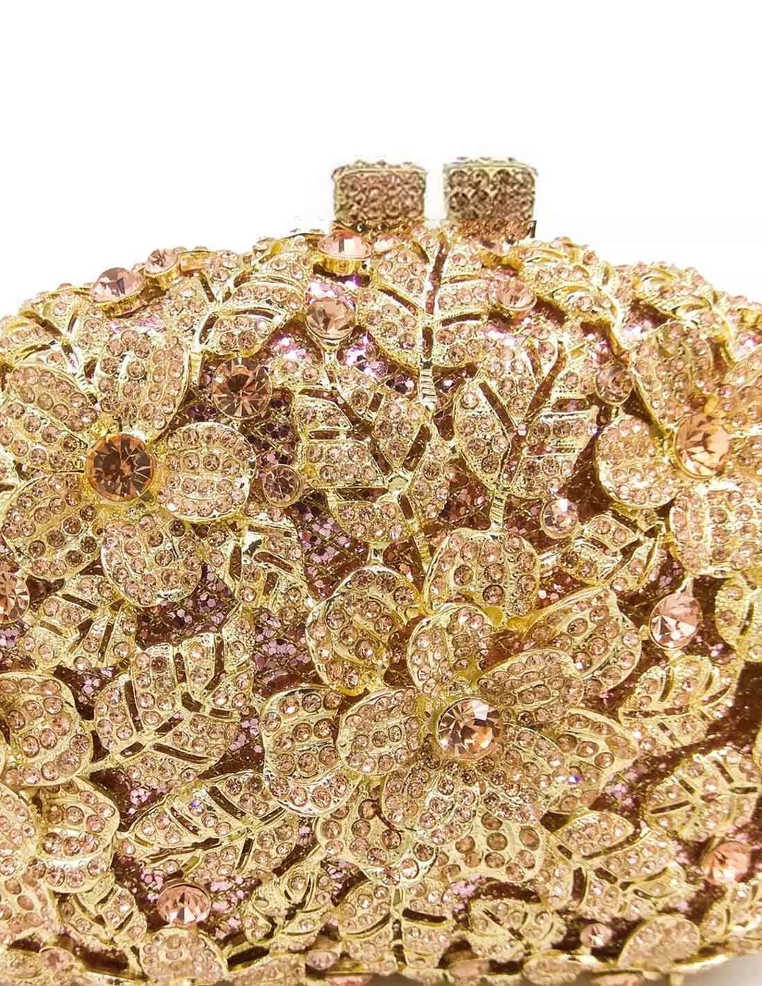 Bolso de mano joya con flores de metal y Swarovski