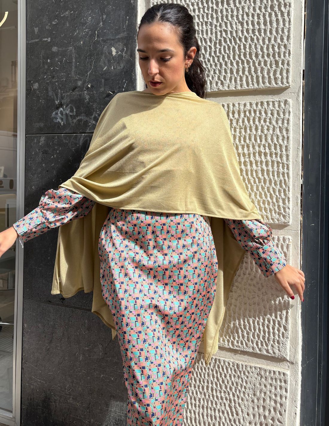 Si buscas un complemento especial para tus eventos de otoño, esta capa de fiesta corta será tu favorita. Podrás lucirla en todo tipo de ocasiones, tanto formales como casual. Realizado en un tejido de brillo en color dorado. Versátil y perfecta para combinar con vestidos, conjuntos, trajes... o incluso de manera más de diario. Es un modelo multiposición que podrás colocar como más te guste. Su tejido de brillo aporta un toque sofisticado que será un si para tu look de fiesta.