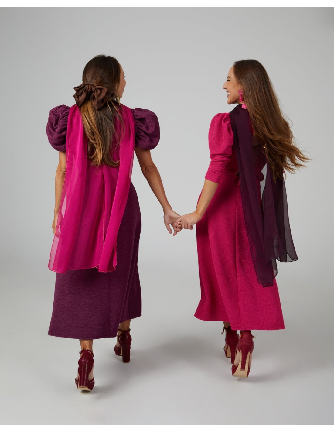 Capa larga en gasa catiónica vino de doble hilo para invitadas, madrinas y ocasiones especiales.