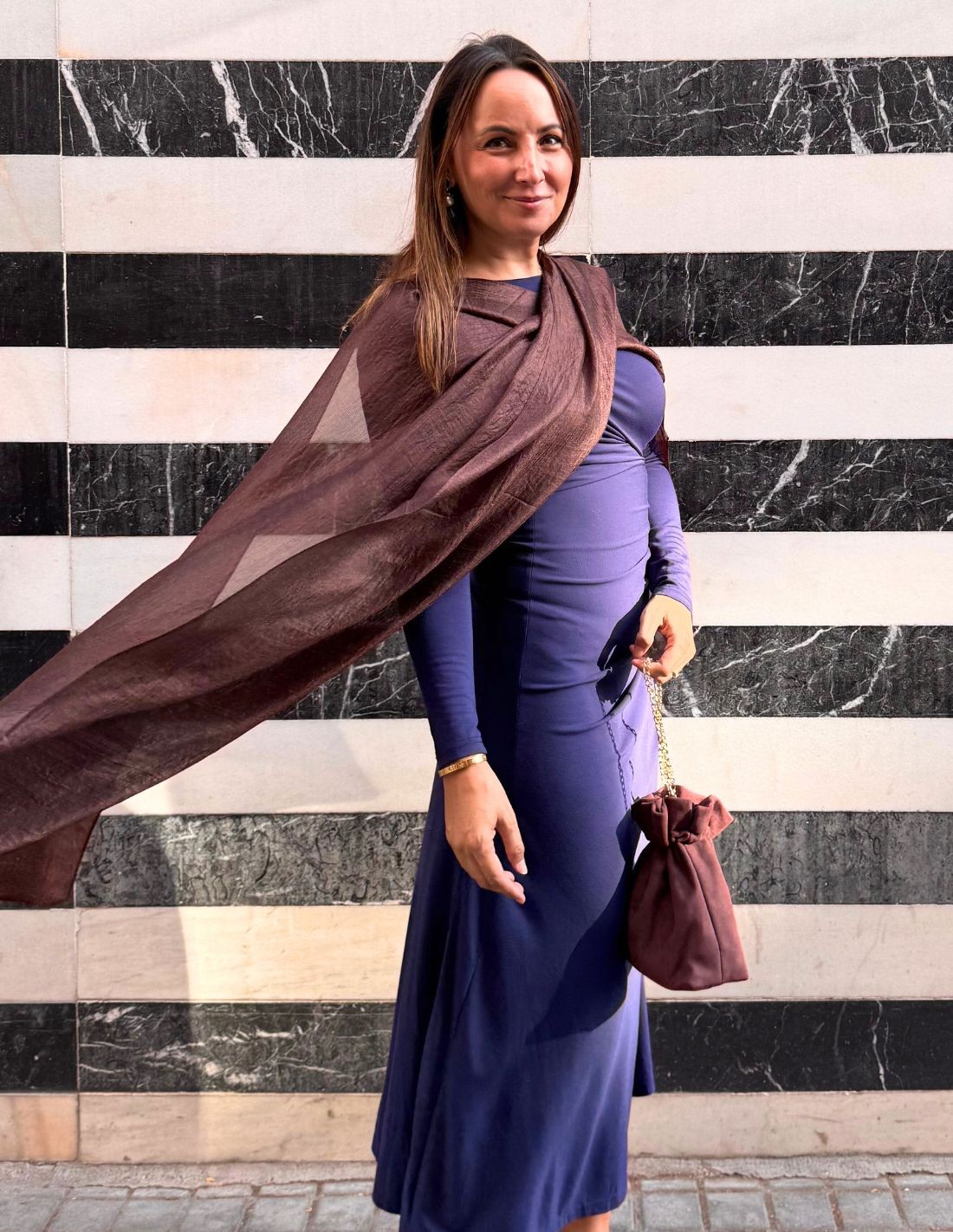 Completa tu look de invitada con este elegante fular en tono marrón chocolate, un accesorio versátil y sofisticado que añade estilo a cualquier look. Su tejido ligero y suave lo convierte en la opción perfecta para acompañarte en bodas, eventos o celebraciones tanto de día como de noche. El color marrón chocolate aporta elegancia, combinando a la perfección con tonos neutros, dorados o empolvados. Gracias a su diseño atemporal, podrás lucirlo sobre los hombros, anudado o como complemento para realzar vestidos y conjuntos de invitada.
