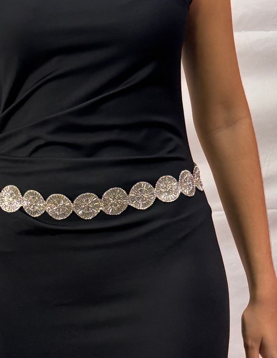 Cinturón de fiesta con flores de pedrería plateada