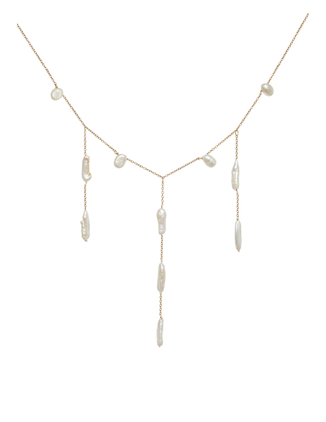 Collar dorado con colgantes de perlas