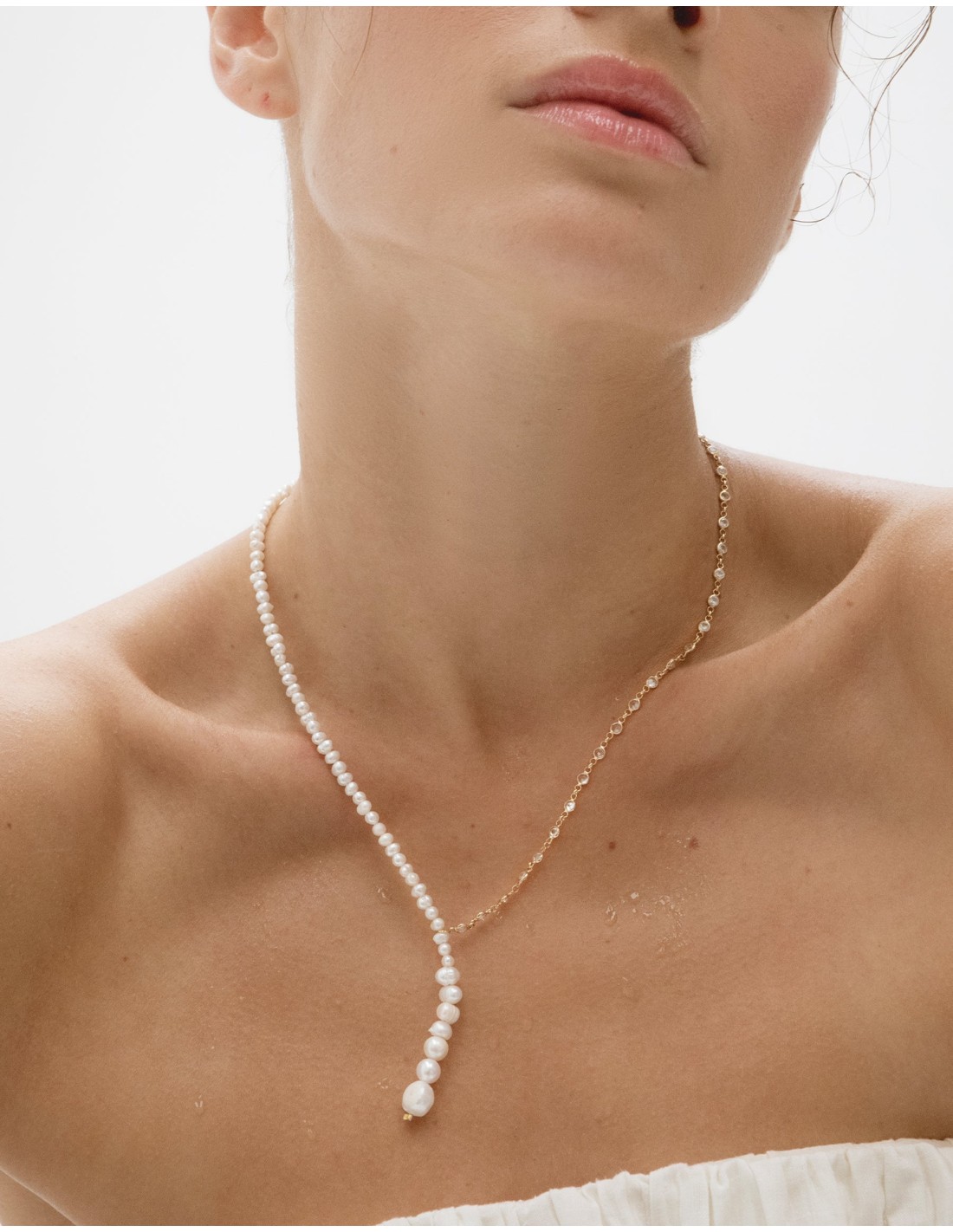 Collar largo con perlas y circonitas