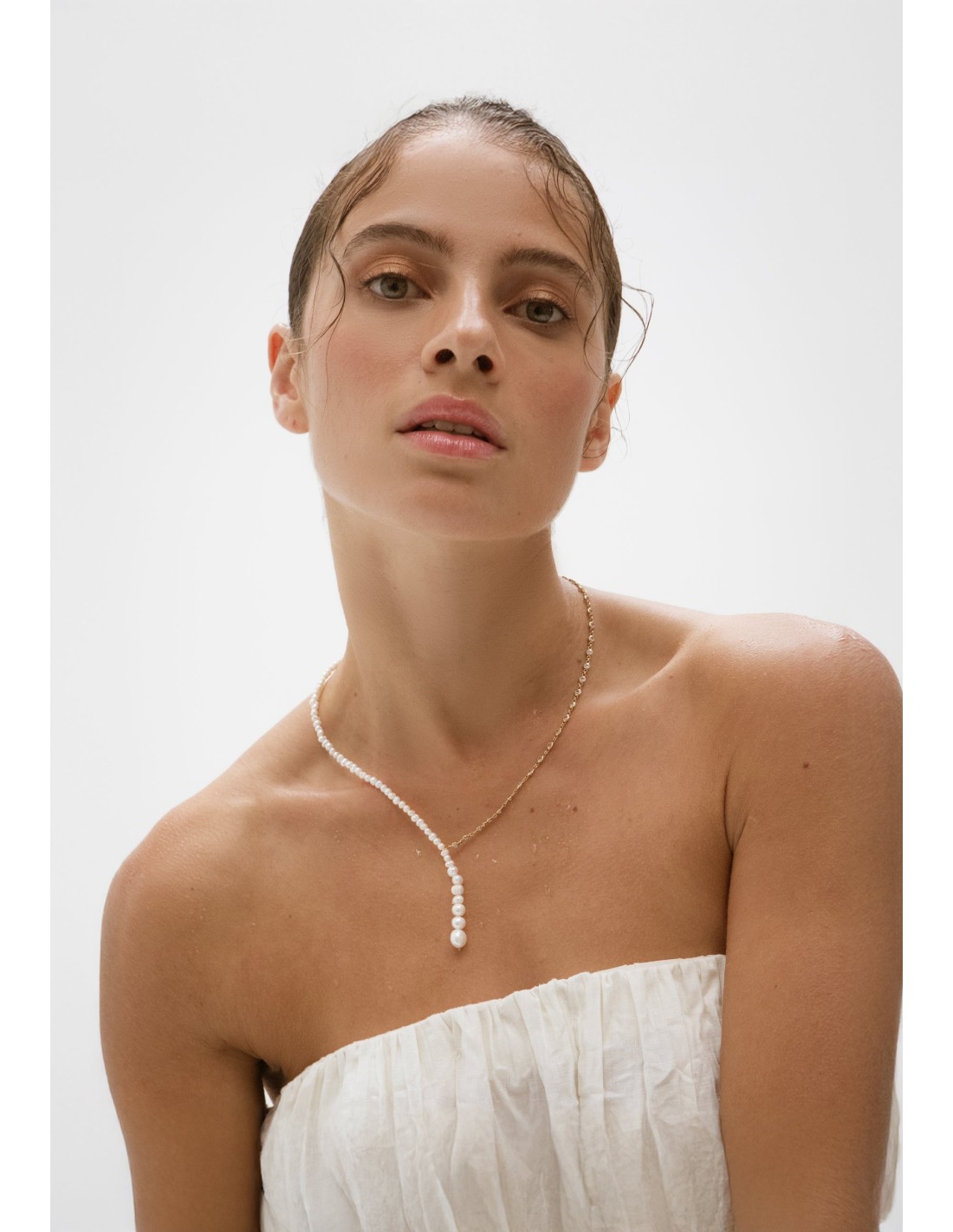 Si buscas un collar que complete tu look y te haga marcar la diferencia, este collar largo puede ser la opción ideal. Un collar con un diseño elegante y sofisticado, con perlas que forman una línea continua alrededor del cuello y con circonitas incorporadas en la otra mitad. Su diseño refinado lo convierte en el accesorio ideal con el que complementar cualquier look, ya sea de novia o de invitada.