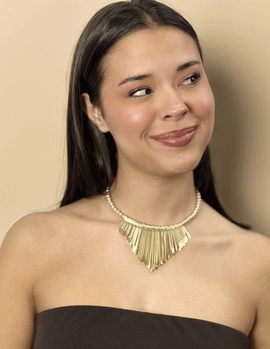Ideal para quienes aman la moda bohemia con un aire elegante, esta gargantilla transforma cualquier outfit: desde un vestido de noche hasta una blusa sencilla. Su acabado brillante y su estructura equilibrada aportan carácter sin perder ligereza, convirtiéndola en una pieza clave para cualquier ocasión.