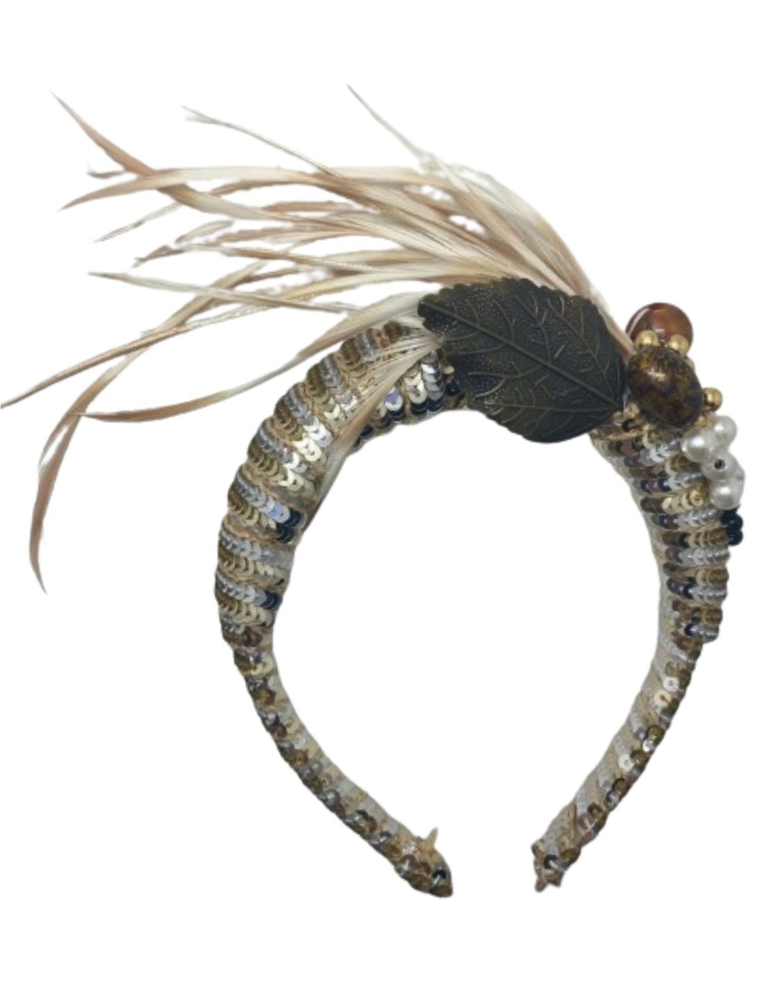 Diadema de fiesta con lentejuelas doradas y plateadas para invitadas especiales.