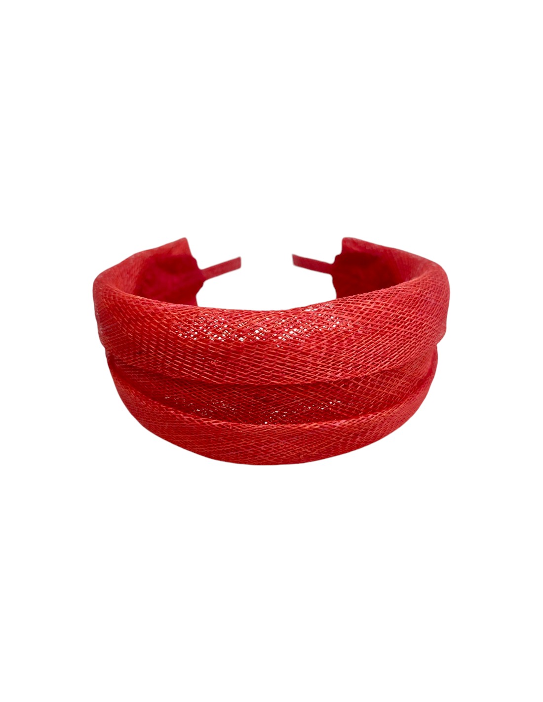 Diadema de rafia artesanal en color rojo, una pieza elegante y atemporal que aporta un toque sofisticado a cualquier look. Con un diseño ancho de 4 cm y una estructura ligera, esta diadema es ideal para eventos especiales como bodas, comuniones o cenas elegantes.
