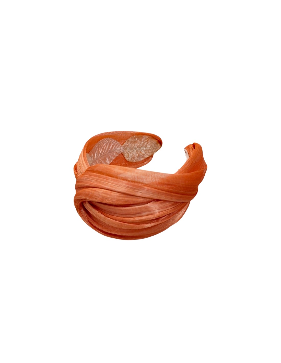 Diadema de invitada en abaca seda naranja para eventos especiales
