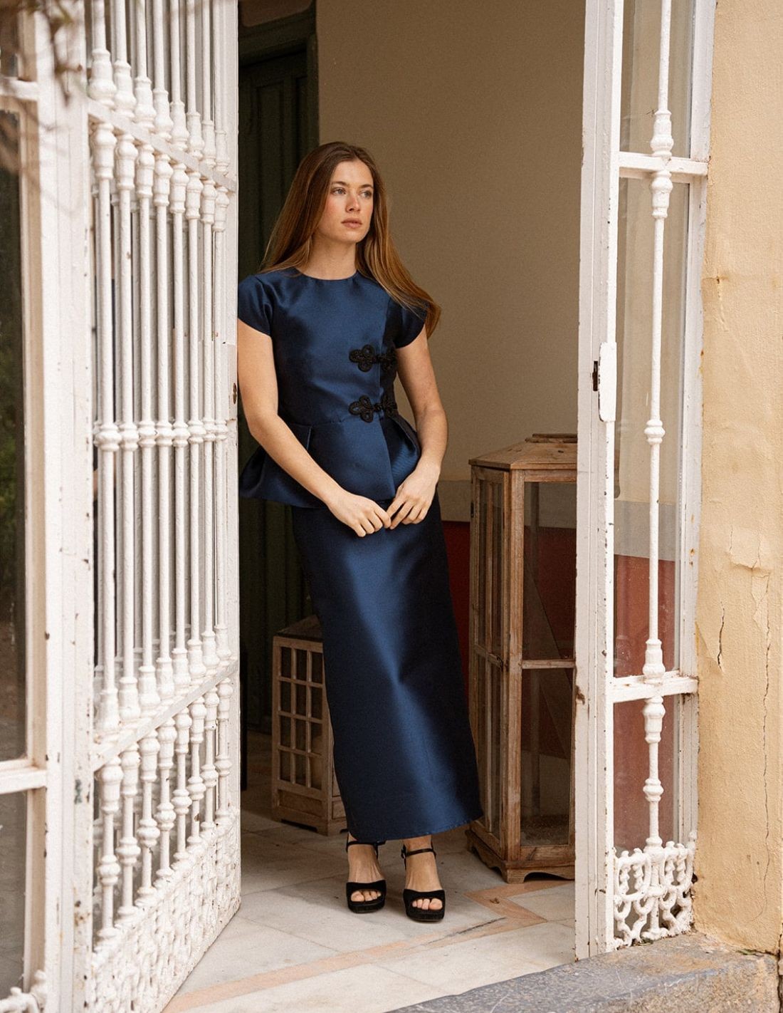 Falda midi recta a conjunto con top para invitada
