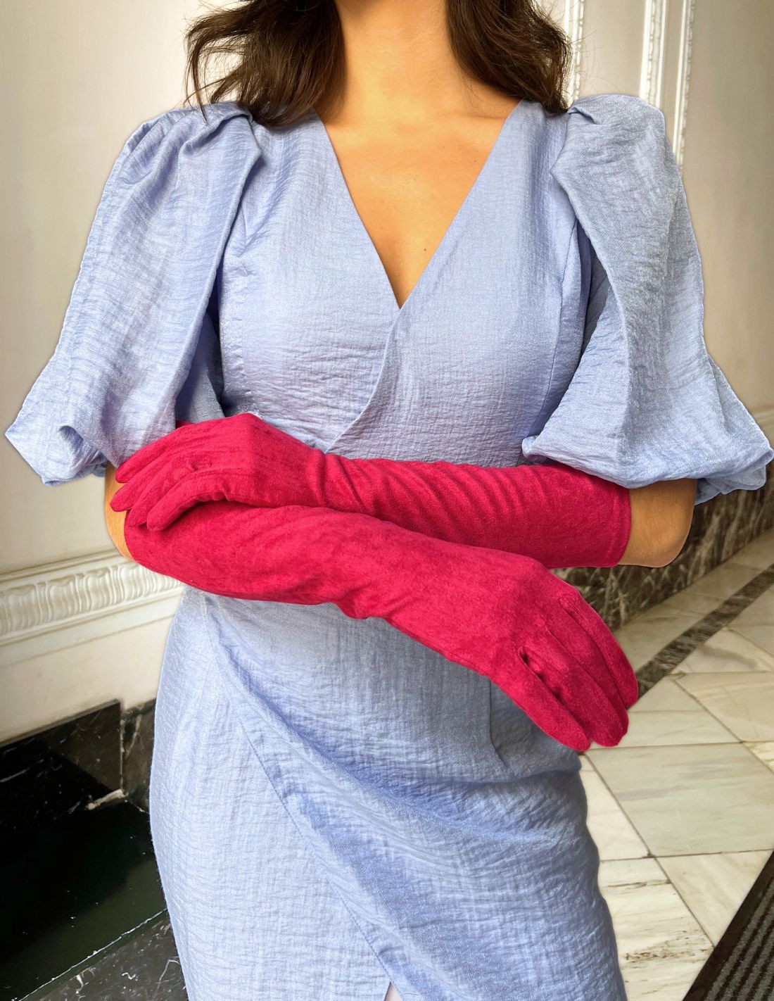 Guantes de antelina largos para invitada