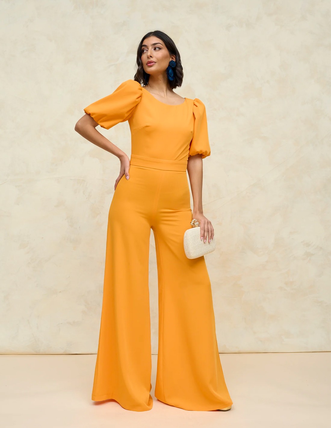 Una prenda que podrás lucir en todo tipo de eventos, tanto de día como de tarde. Para bodas, graduaciones, comuniones...etc., ¡irás perfecta! Un mono en uno de los colores de la temporada para tus eventos de primavera. Incorpora mangas cortas con toque abullonado y pata de elefante.