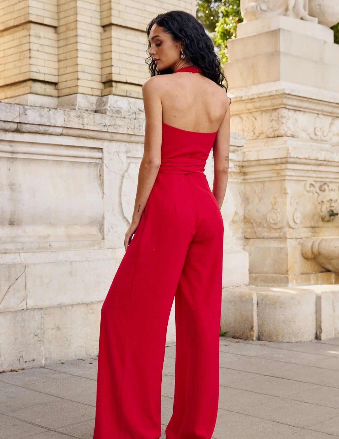 Mono largo pata de elefante rojo con cuello halter, perfecto para un look elegante y moderno. Con su corte fluido y silueta favorecedora que realza la figura, mientras que el diseño con cuello halter aporta un toque sofisticado y único. Perfecto para ocasiones especiales o eventos nocturnos, este mono combina estilo y comodidad, convirtiéndolo en una opción versátil para cualquier temporada.