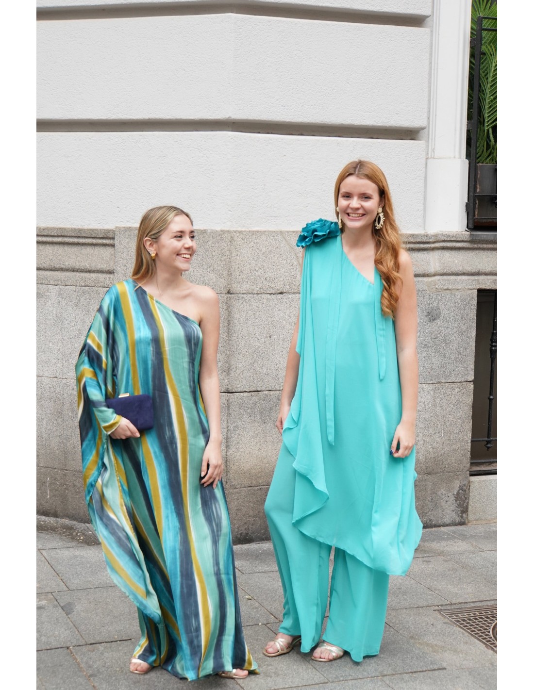 La prenda más versátil para invitada que podrás lucir en cualquier ocasión, es este mono confeccionado en gasa color verde agua. Realizado con una sola manga, hombro descubierto y manga capa con un movimiento fluido súper elegante. Además, incorpora lazada al cuello que le da ese toque especial. Podrás lucirlo en bodas, comuniones, bautizos o graduaciones. Su silueta fluida y diseño cómodo, ¡te harán ser la invitada perfecta!
