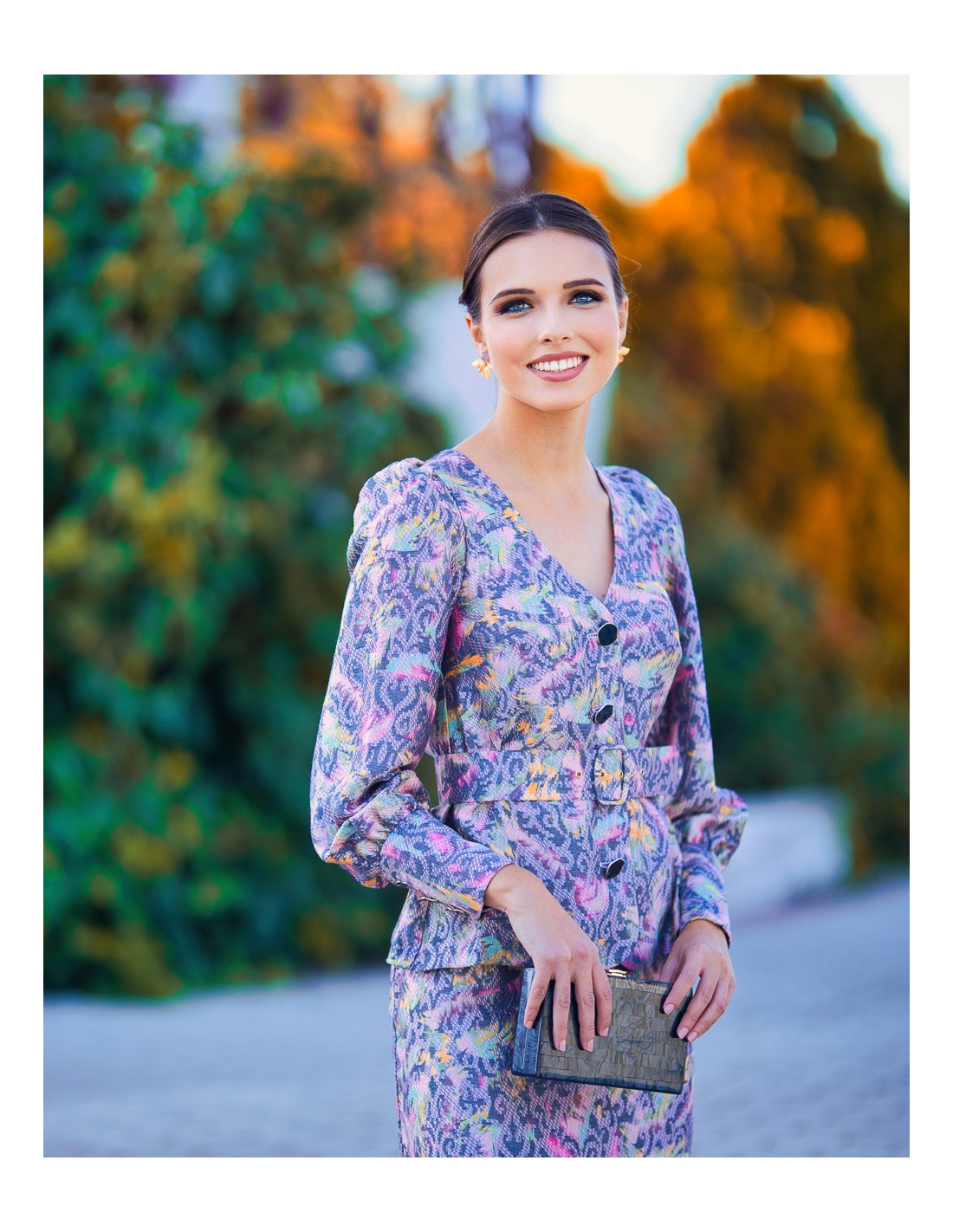Falda lápiz con corte midi y estampado
