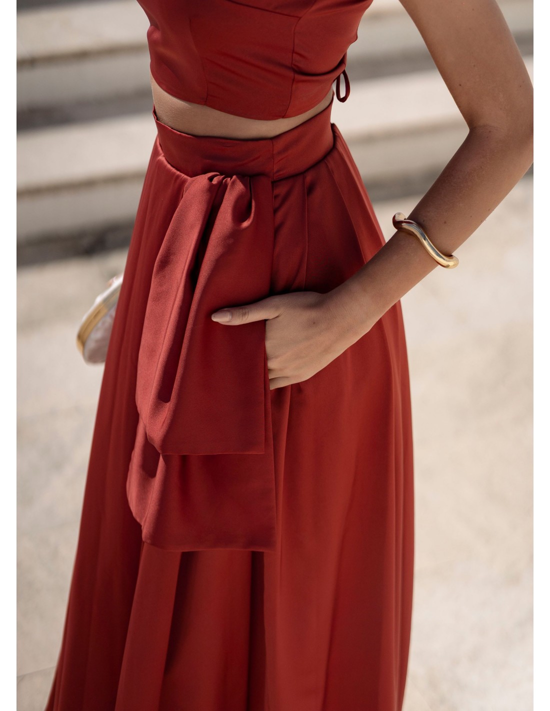 - Falda larga terracota.