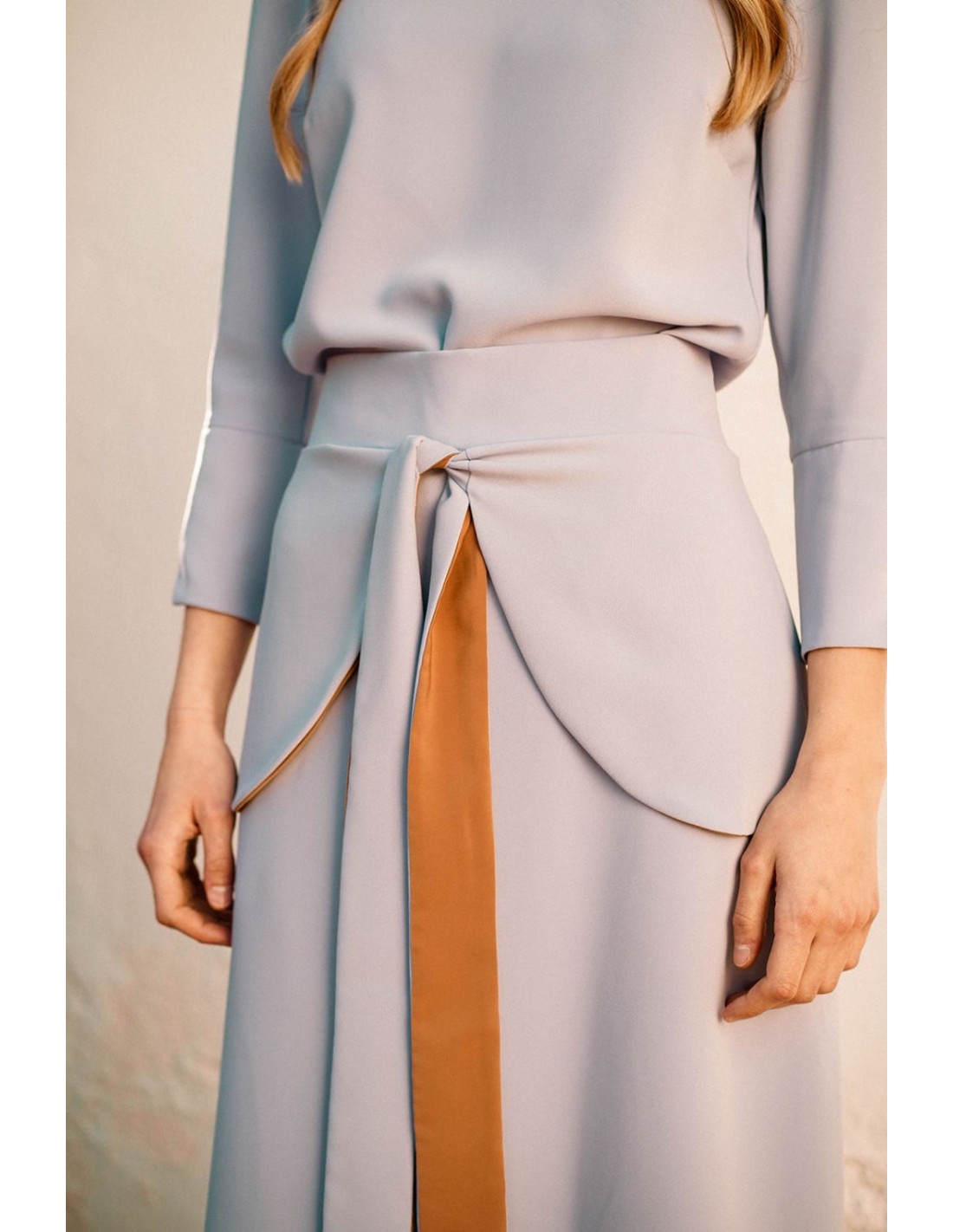 Falda midi evasé con lazada delantera