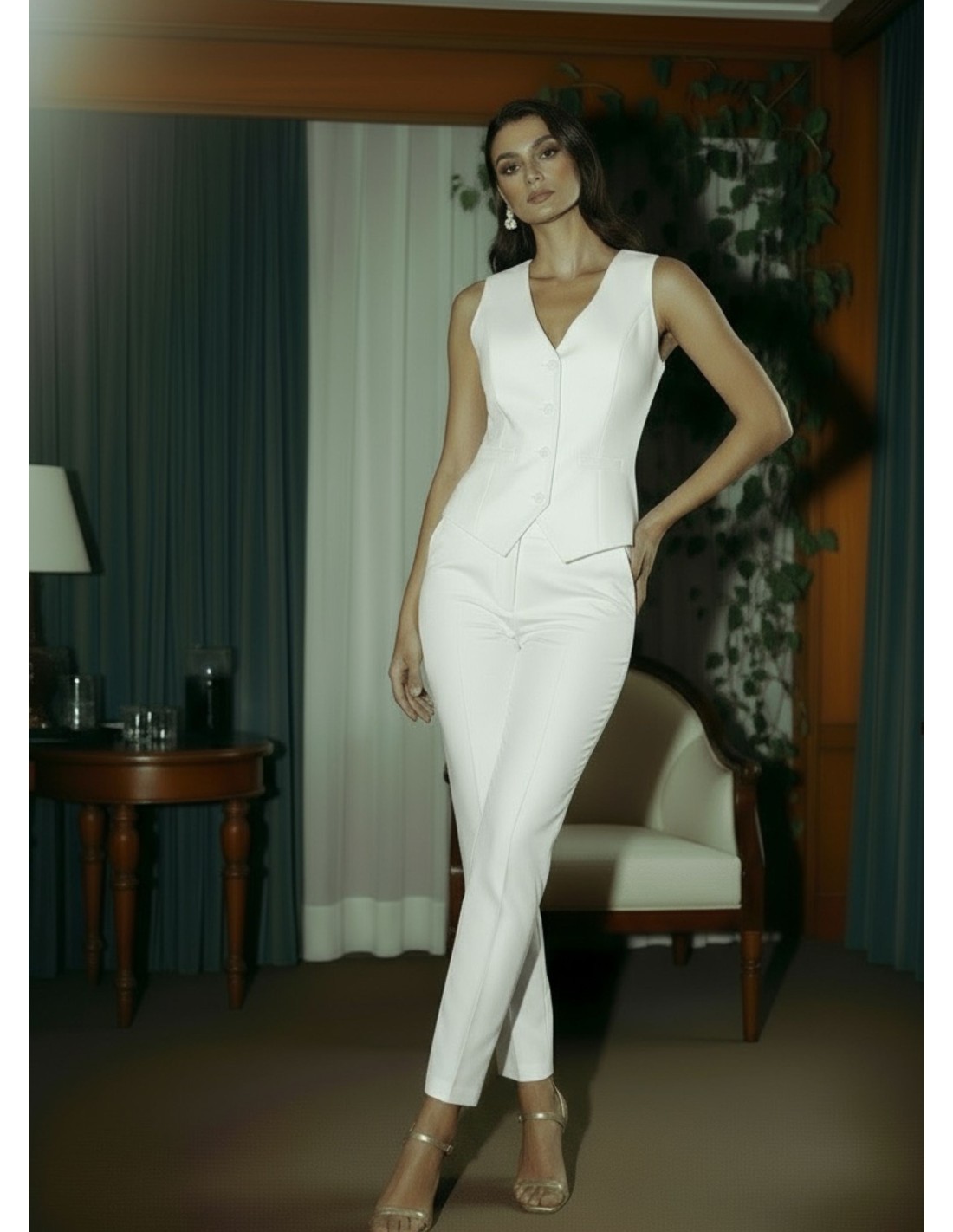 Pantalón blanco de cintura alta para eventos especiales