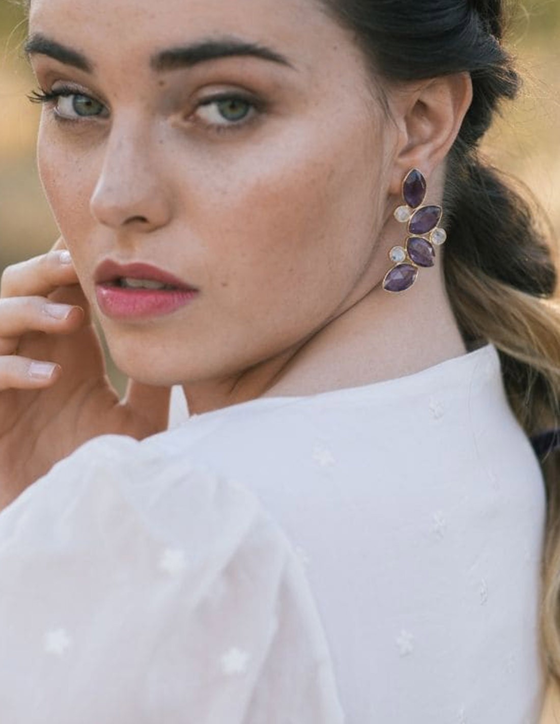 Ideales estos pendientes para invitada con piedra amatista. Un complemento perfecto para dar ese toque de color a tus looks tanto desenfadados como para tus ocasiones especiales más elegantes. Realizado con un diseño delicado que aportará luz y elegancia. Se convertirán en tu pieza más especial del joyero.