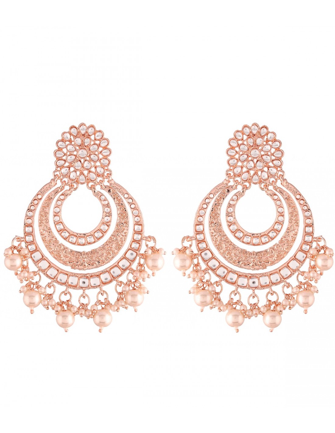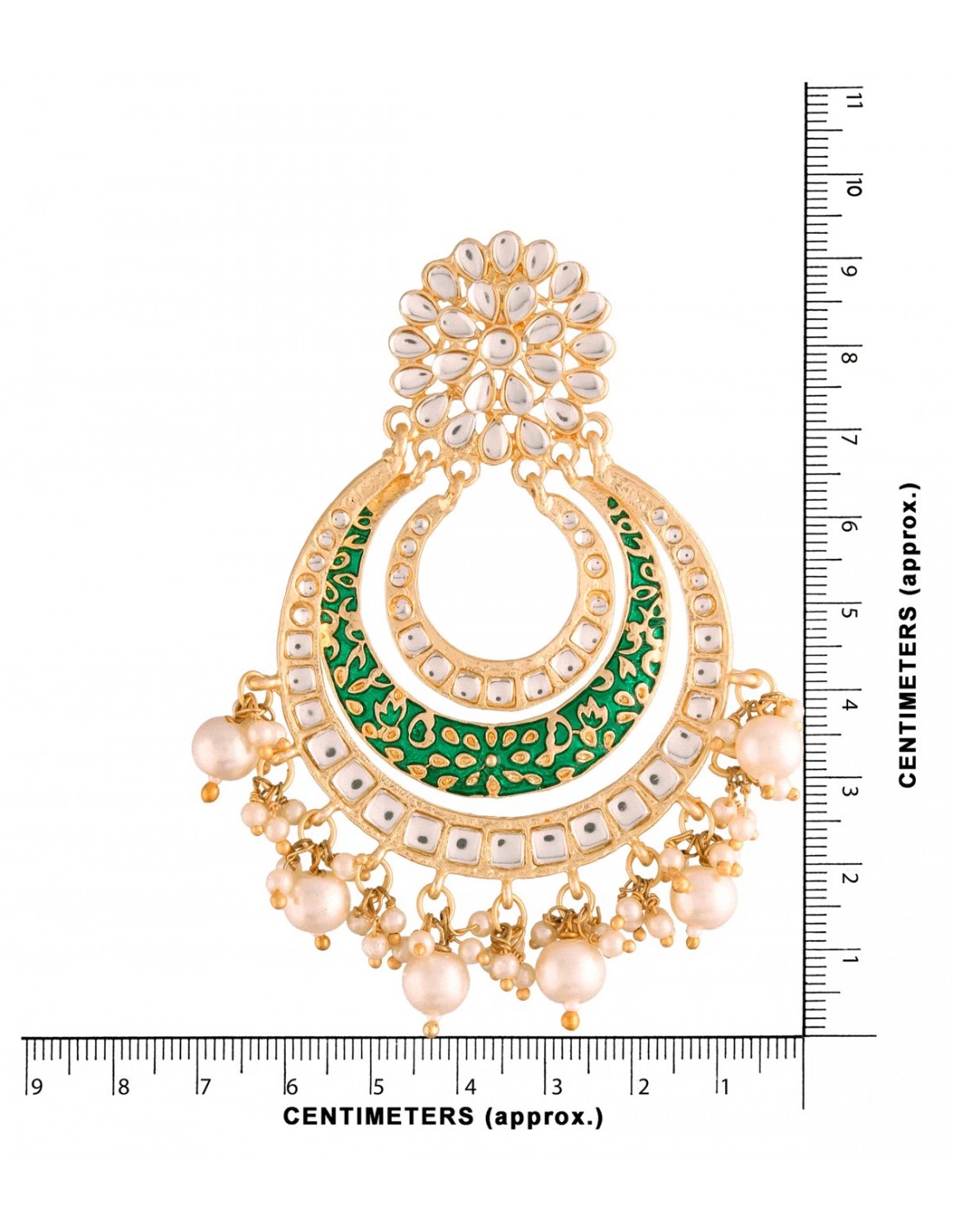 Metal: Aleación de zinc, chapado en oro de 18 quilates. Piedras: Kundan y Perlas de gran calidad.
