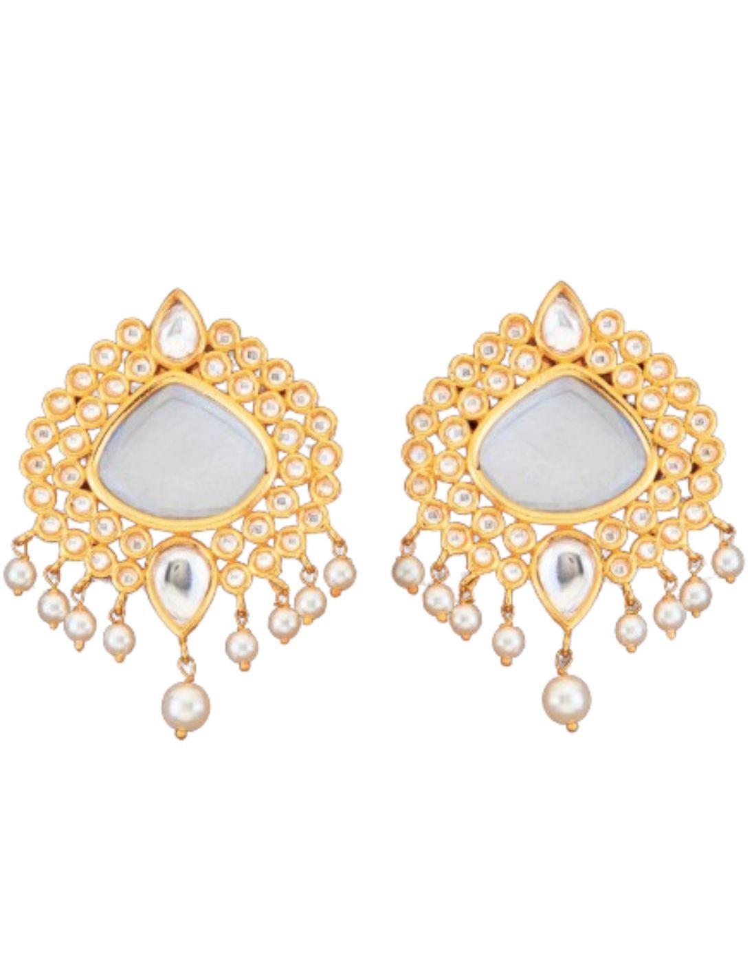 Pendientes de fiesta XL dorados con perlitas blancas para ocasiones especiales.