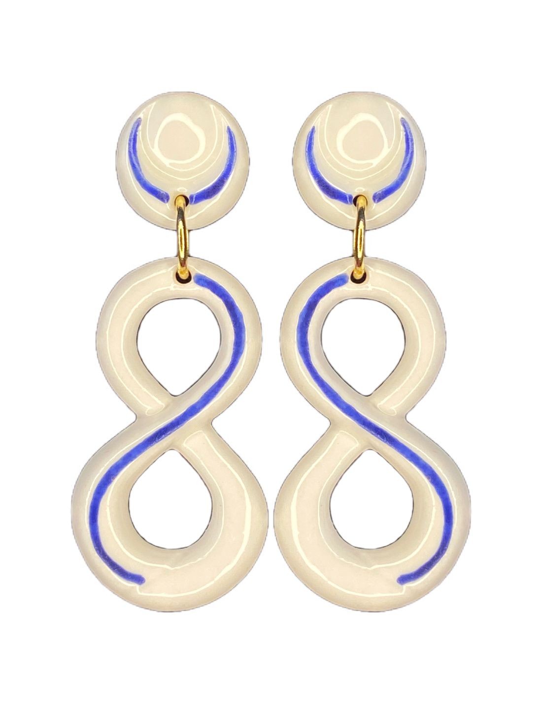 Pendientes largos infinito de cerámica esmaltada azul para madrinas, invitadas y novias, y eventos especiales.
