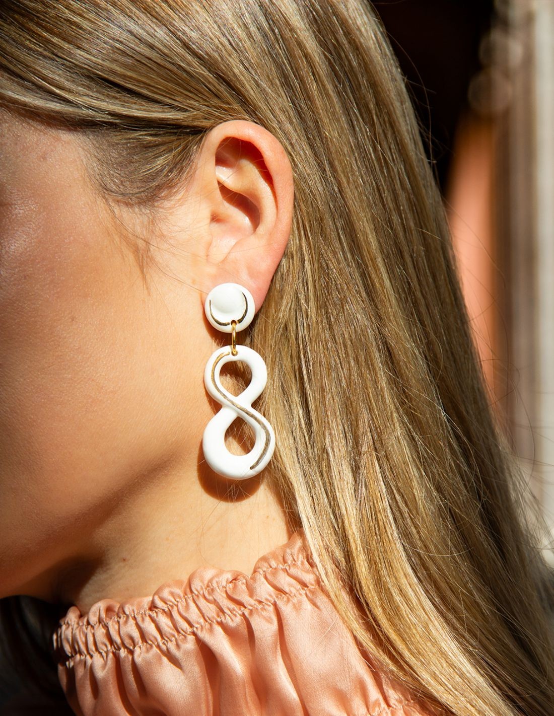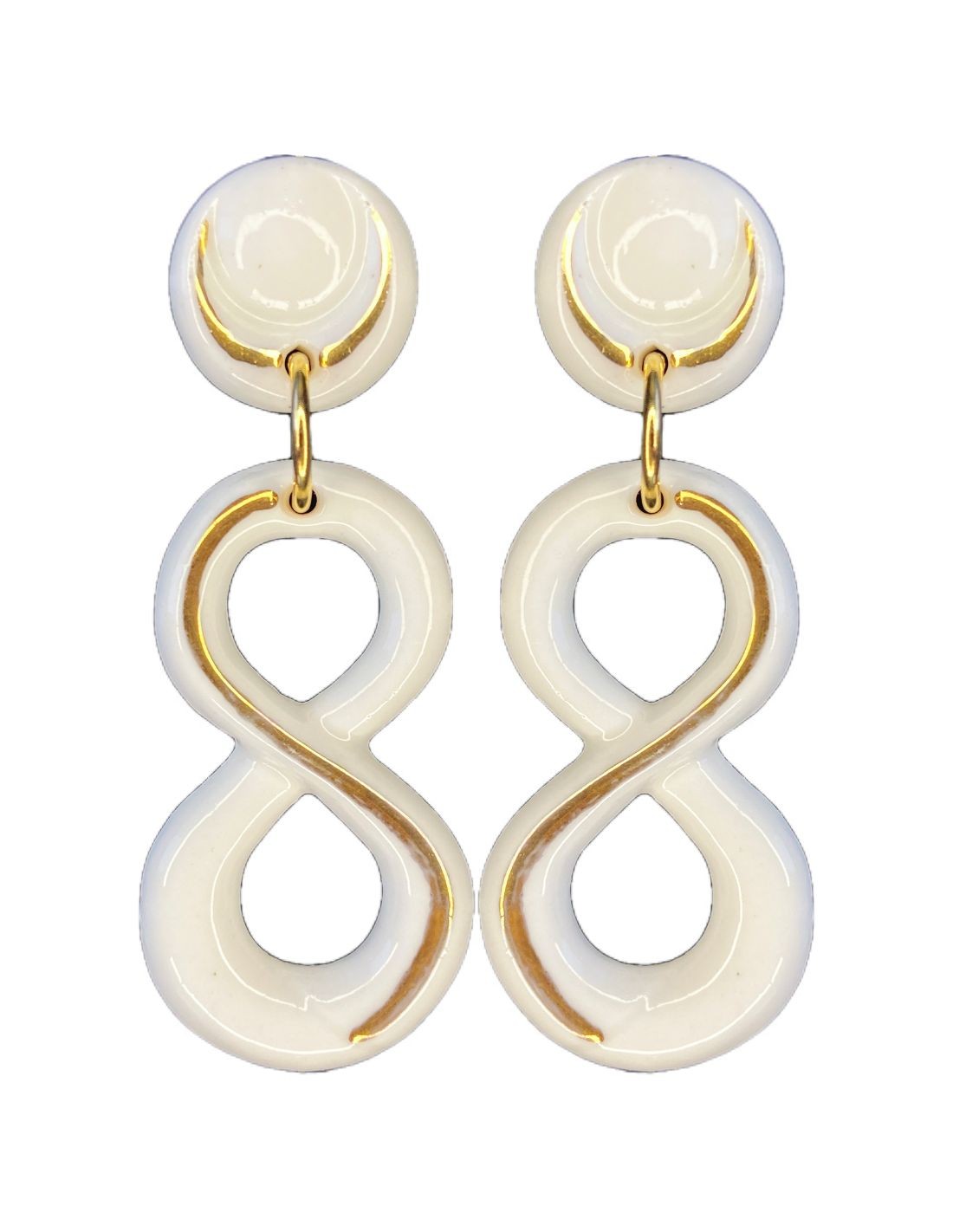 Estos pendientes se realizan artesanalmente con puro oro 24k, utilizando únicamente pura porcelana cerámica de alta calidad y fornituras hipoalergénicas. Son sorprendentemente livianos, resistentes y cuentan con un cierre anticaída cómodo y seguro.