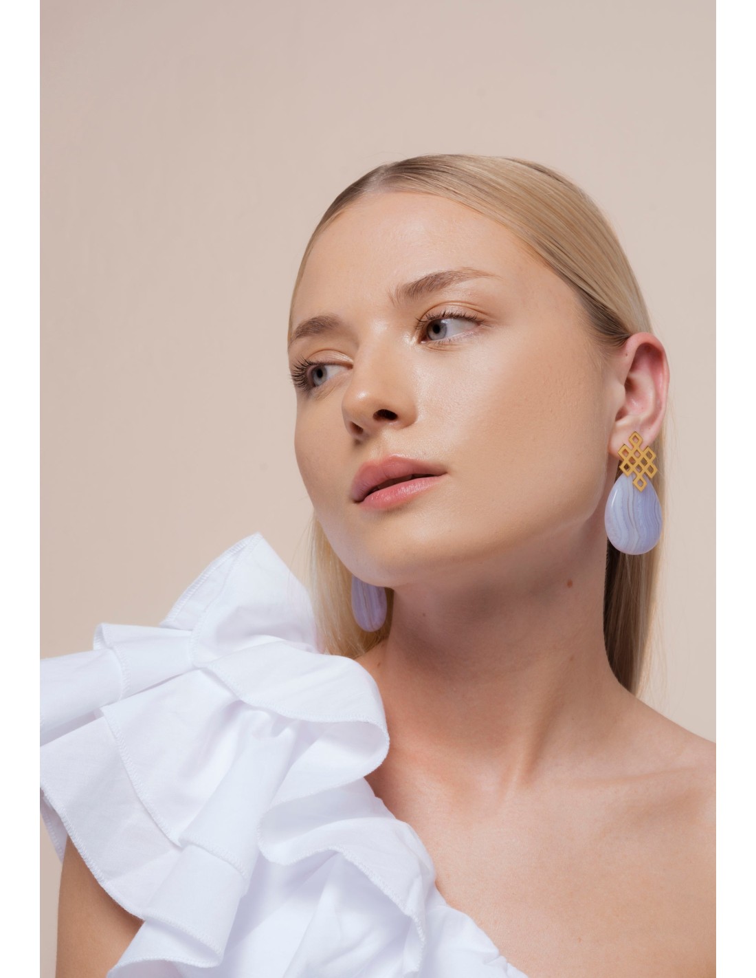 Descubre la elegancia simbólica de los Pendientes Endless Knot Azul, con un refinado acabado en baño de oro y piedra azul natural. Su diseño representa la conexión eterna, aportando profundidad y estilo a cualquier conjunto. Ideales para quienes buscan una joya con carácter y significado.