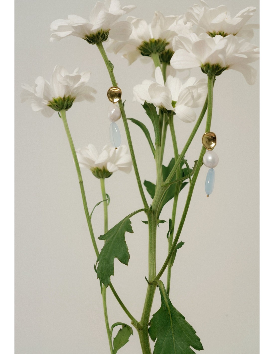Pendientes con perlas y piedras celestes