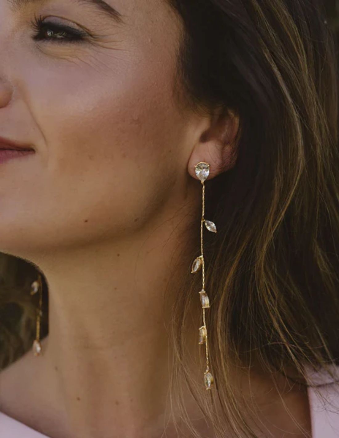 Pendientes largos con mini hojas de circonitas