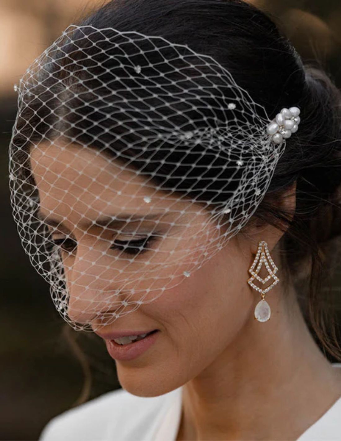 Pendientes de fiesta con circonitas y piedra blanca