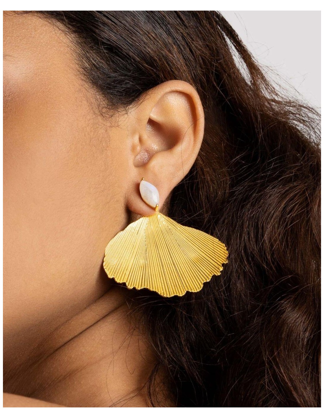 Destaca en tu próximo evento y eleva tu look con un complemento que marque la diferencia, como estos pendientes dorados. Con un diseño grande con forma de hoja dorada, con una pequeña piedra blanca incorporada en la parte superior. Acabados con un baño de oro de 22k, perfectos si quieres brillar en cualquier ocasión especial.