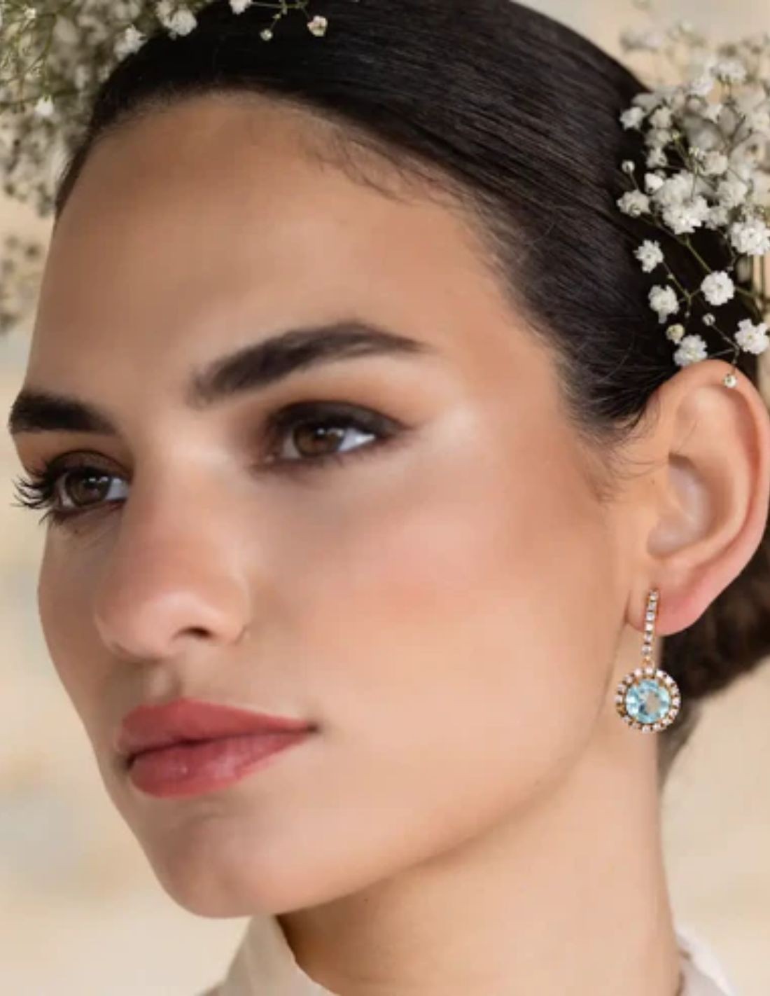 Estos pendientes destacan por su diseño refinado y luminoso, centrado en una piedra facetada, aportando un brillo sutil y sofisticado. La piedra central está rodeada por un delicado halo de circonitas engastadas con precisión, que realzan su resplandor y aportan un acabado elegante y equilibrado. Fabricados en latón bañado en oro. Su diseño atemporal los convierte en una elección perfecta tanto para eventos especiales como para complementar looks cotidianos con un toque de distinción.