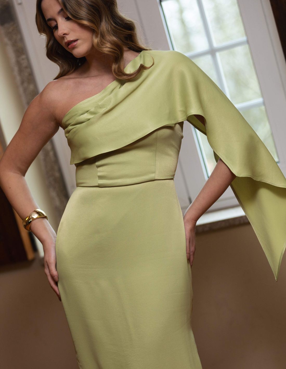 Deslumbra con elegancia y estilo con este vestido de fiesta largo en un sofisticado tono verde esmeralda. Su escote asimétrico añade un toque moderno y refinado, mientras que su corte entallado realza la silueta de forma favorecedora. Perfecto para bodas, galas o eventos especiales donde quieras destacar con un look inolvidable.