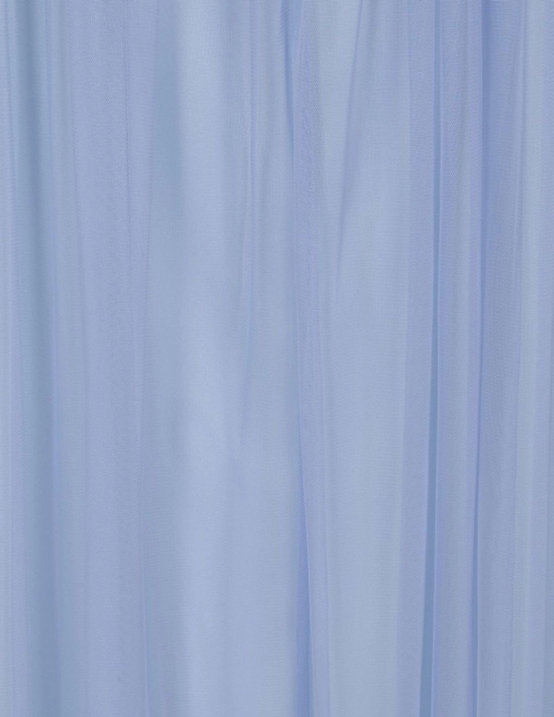 Este vestido para invitadas se confecciona en un ideal crepe combinado con tul azul cielo muy favorecedor. Con cuerpo totalmente adornado de lentejuelas a tono y plateadas.
