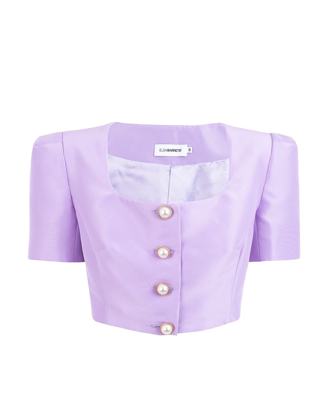Crop-top de manga corta con botones perla para ocasiones especiales.