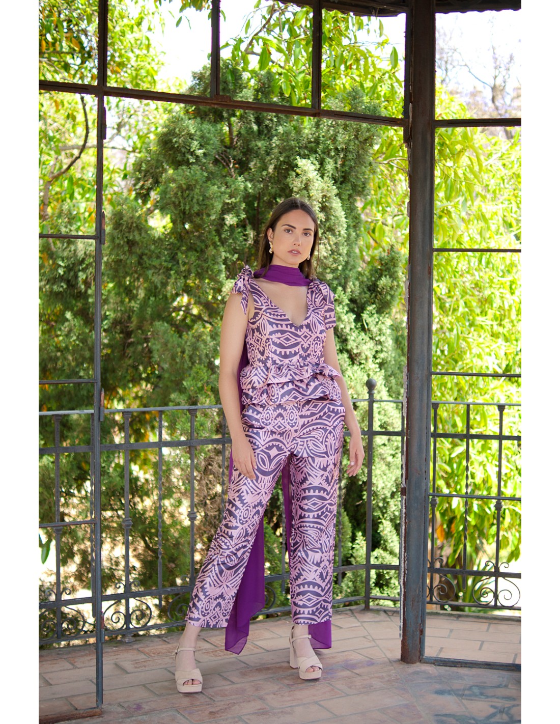 Combina este top para invitada con lazos, y será la invitada perfecta de tu próximo evento de verano. Con estampado en color rosa, con lazos en los tirantes y unos delicados volantes en la parte inferior del busto. Ideal para una boda o incluso para una tarde de verano.