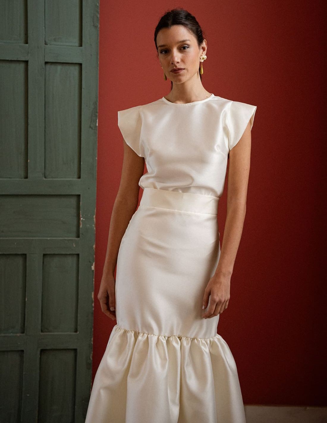 Top de mikado en color crudo con diseño estructurado y líneas limpias que realzan la silueta con elegancia. Una pieza sofisticada y versátil, perfecta para looks modernos con un toque minimalista.