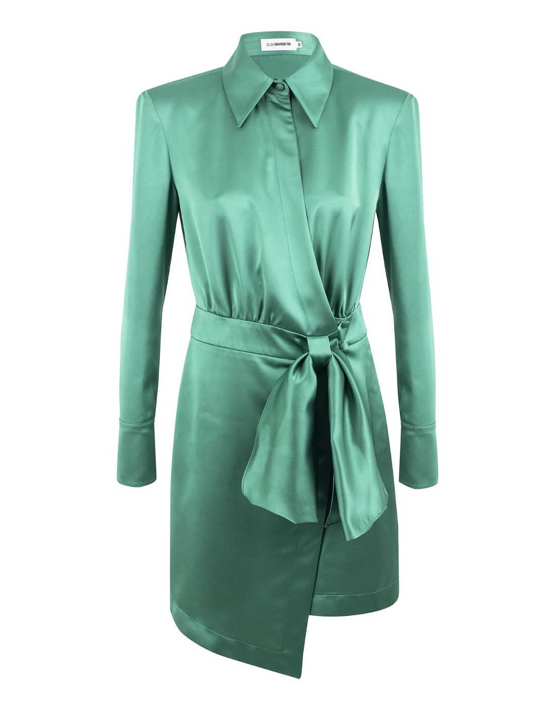 Vestido camisero satinado verde esmeralda - Roxana Zurdo