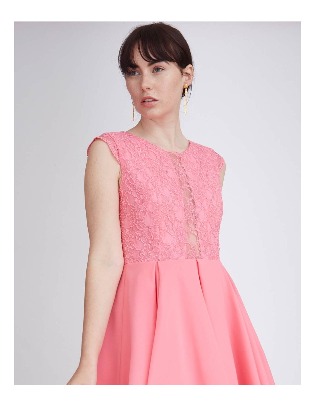 Si tienes un evento de mañana, las pamelas y los canotier son el complemento perfecto para este increible vestido de cóctel con falda de vuelo y cuerpo de encaje. ¡Te encantará el resultado!